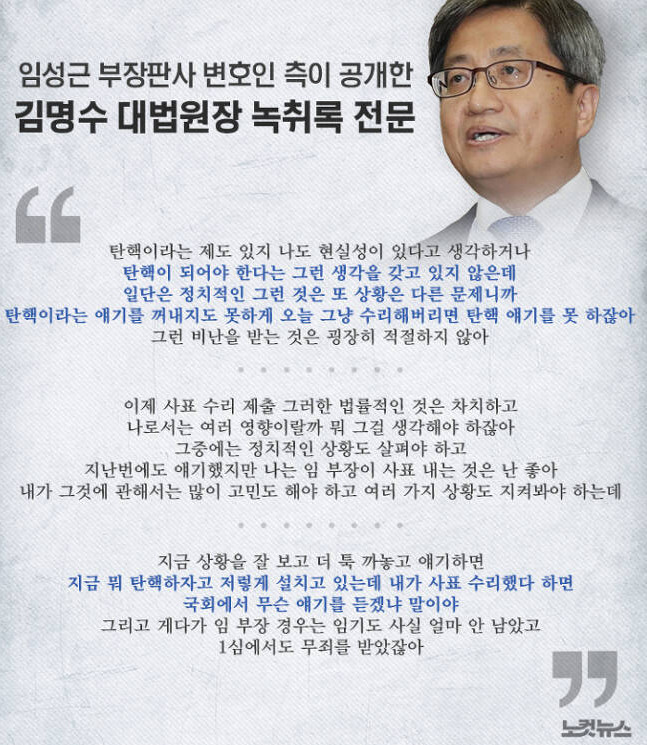 임성근 판사는 대법원장을 만나러 가면서 그 대화를 녹취했어.