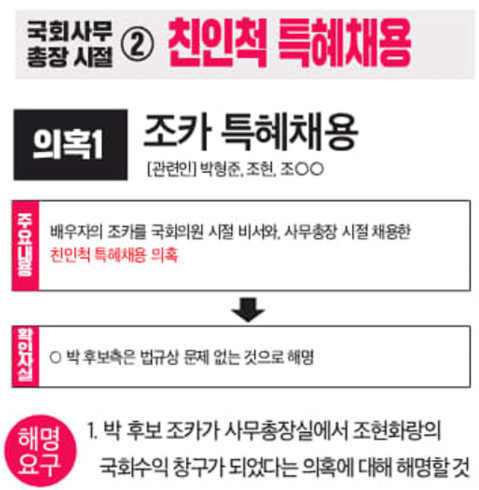♠ 국회사무총장 시절 처조카 특혜고용 논란