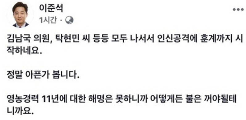 할말 없으니 영농경력 11년에 대한 해명을 하라고 여전히 저러고 놀고 있다.