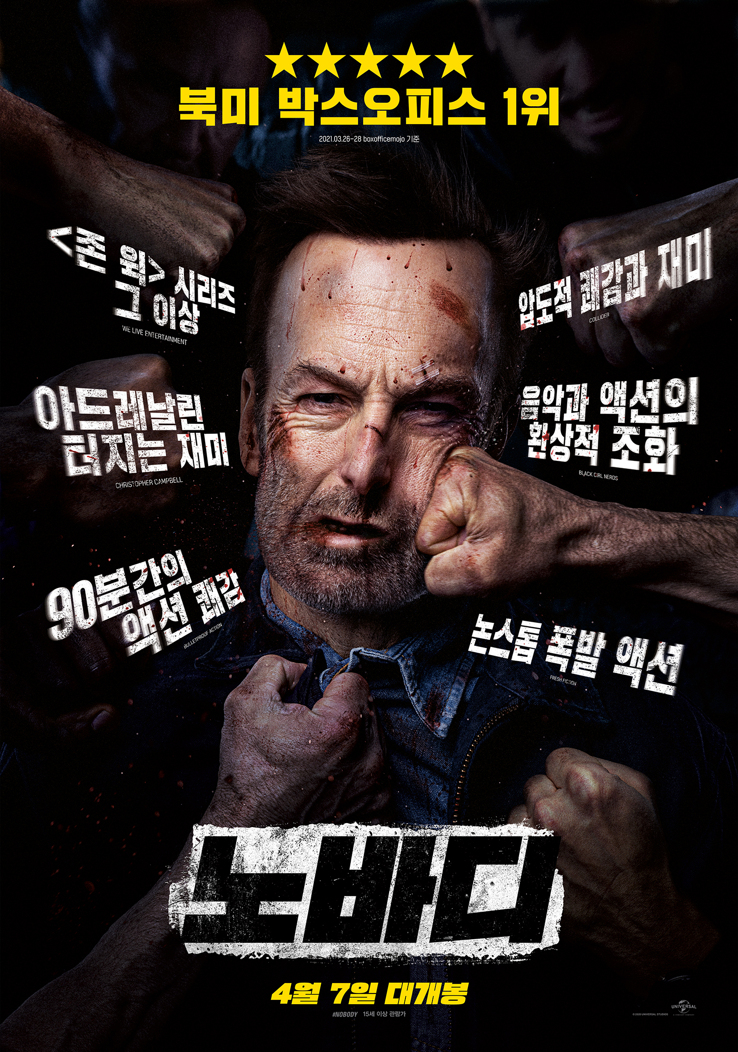 노바디는 덴젤워싱턴의 더 이퀄라이저에 가족이 추가 되었다고 할 수 있는 액션영화다