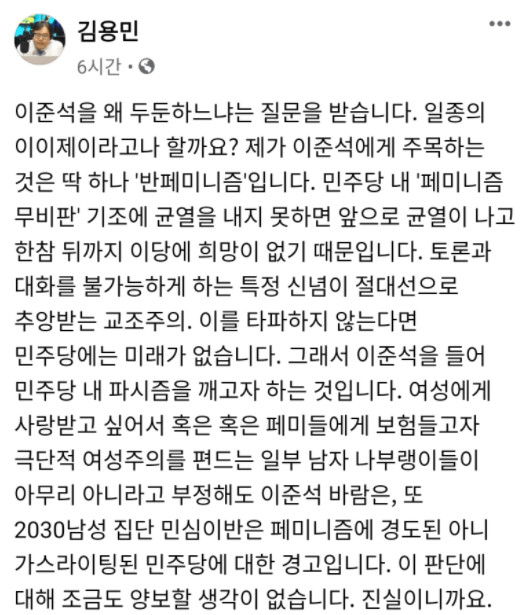 민주당의 신선함은 더민초에 없다 원외지만 김한규가 있고 황희두도 제대로 길을 찾고 나아가고 있어. 민주당은 먼저 김한규의 지역구 부터 빨리 바꾸어야 하는데 쓸데 없는 짓 한다고 정신이 없다.