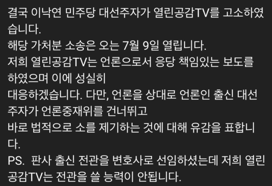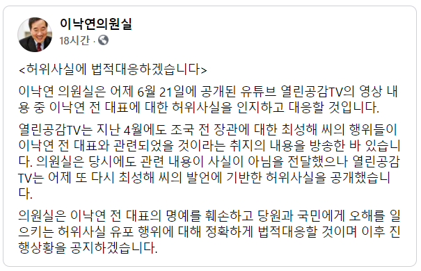 이낙연은 열린공감TV의 반론권에서 그런일 없다고 했어.