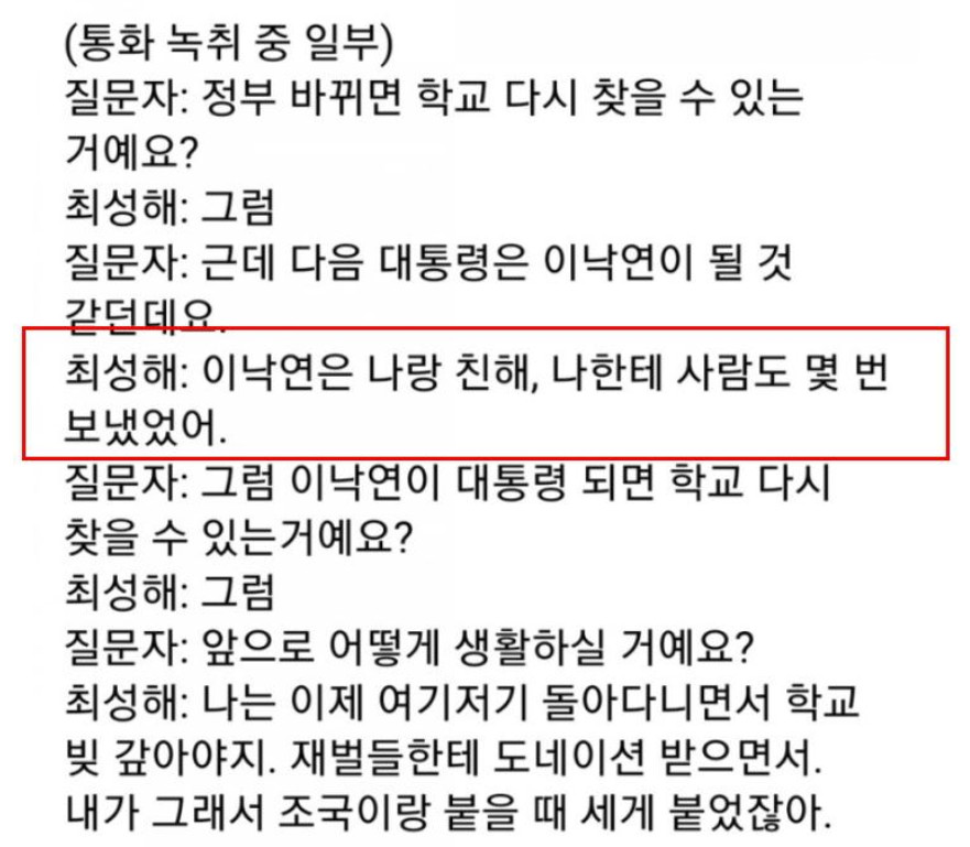열린 공감TV가 방송한 최성해 말을 다 맏지는 않았어 ( 최성해 조카가 녹취 한 것이다 )