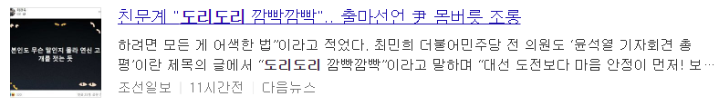 그런데 정말 놀라웠던 것은 적극적인 지지를 보일 것으로 예상한 조중동이 도리어 도리도리 윤이란 별명을 널리 전파 하고 있더라