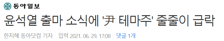 윤석열 테마주는 대선 출마 하는날 바로 급락을 해 버린다. 보통 이때는 호재거던 여태 급락한 적이 없었을텐데?