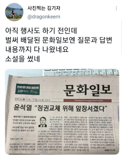 물론 아무 생각 없는 무당같은 언론 문화일보도 있다
