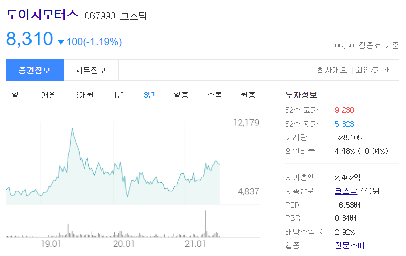 그럼에도 권오수 회장은 2009년 1월 코스닥에 도이치 모터스를 상장함. 처음 주가는 9천원.