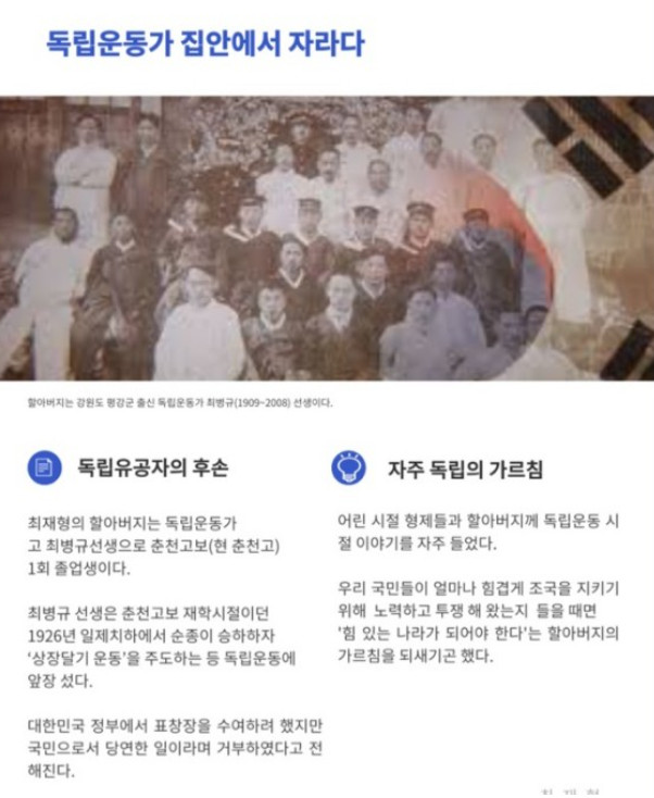 최재형이 처음 언론에 이름이 나왔을때 애국집안이라는 타이틀이 먼저였었다.