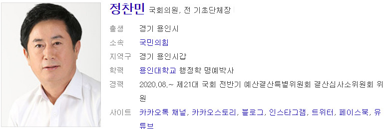 정찬민은 용인시장 떄 뇌물 받은 껀으로 현재 경찰 수사 중이지 이때 부동산도 얽혀 있는데 국민소통 위원장이라니 ..