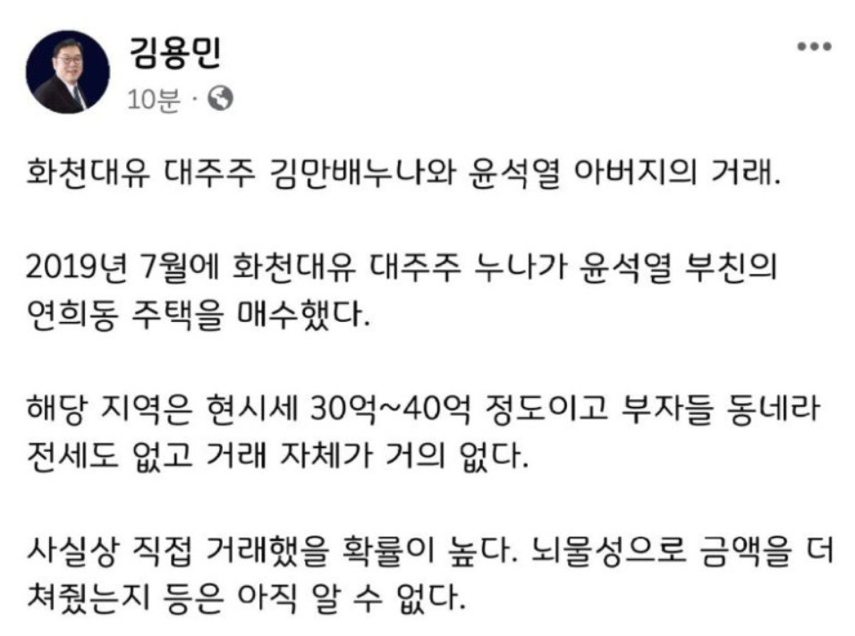 윤석열이 참 좋아하는 박영수 특검도 잘 아는 머니투데이 법조기자 출신 김만배 누나이자 천하동인 3호 사내이사 김명옥씨가 윤석열 아버지 집을 산다.