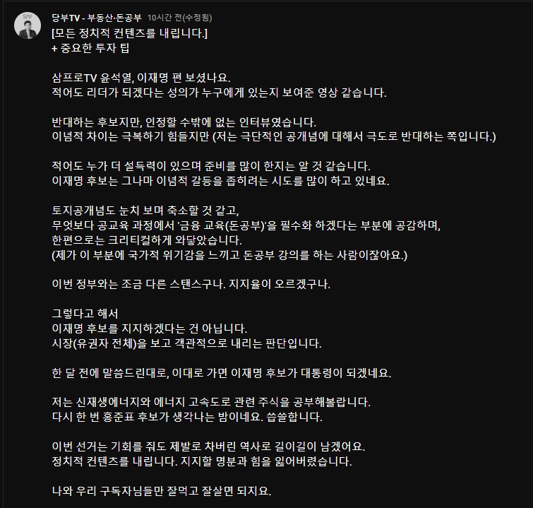 삼프로 나라를 구했다 이재명 윤석열 극과극의 반응이 나오는..주식 경제 유튜브 삼프로.