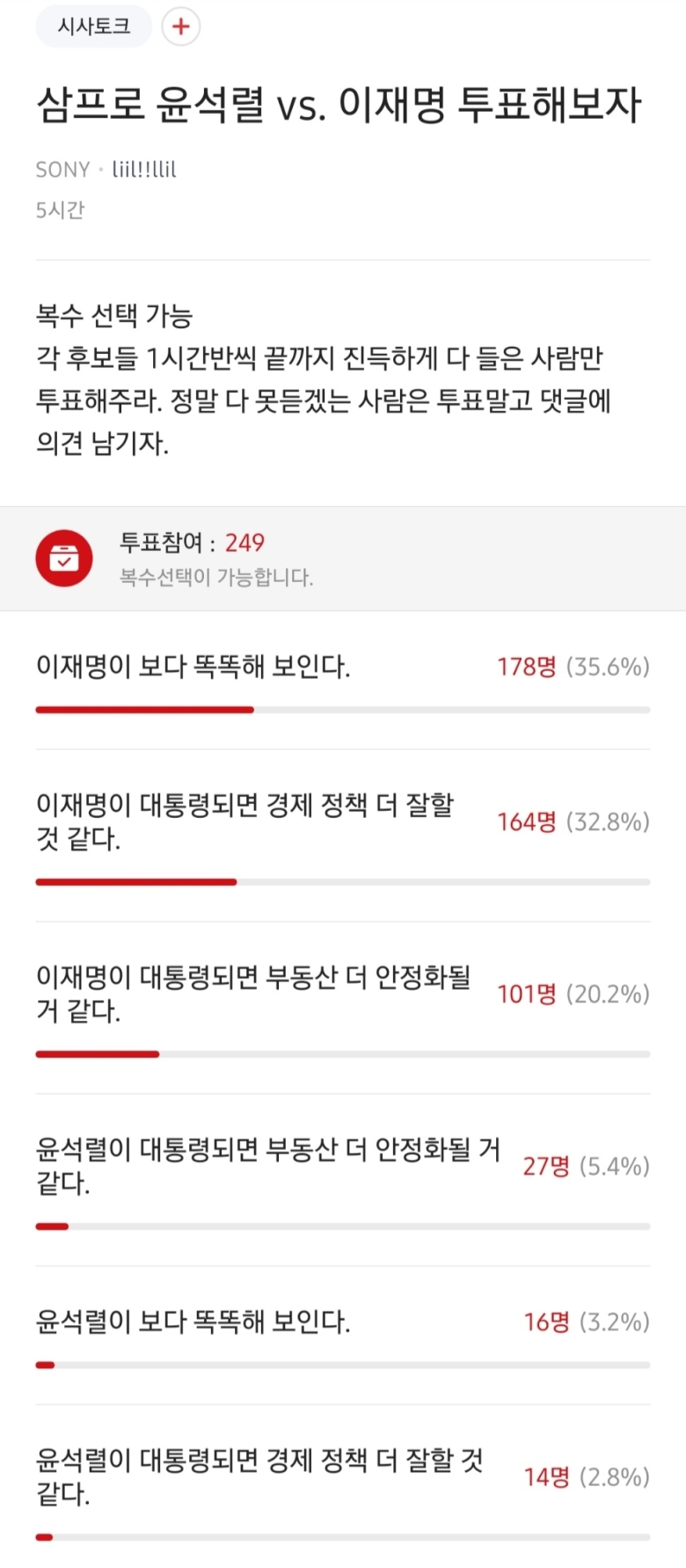 그런데 삼프로에서 보여준 두 후보에 대한 반응은 엄청나다