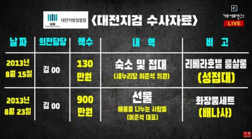 이번 이준석 성상납의 출처 역시 대전지검의 케비넷에 묵혀 있던 수사 기록이라고 해.