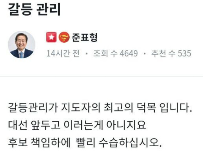 준표 형 반응은 ...