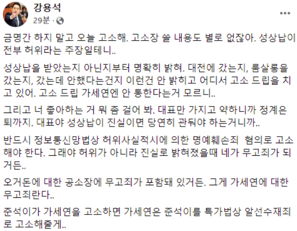 강용석이 아주 세게 나간다.
