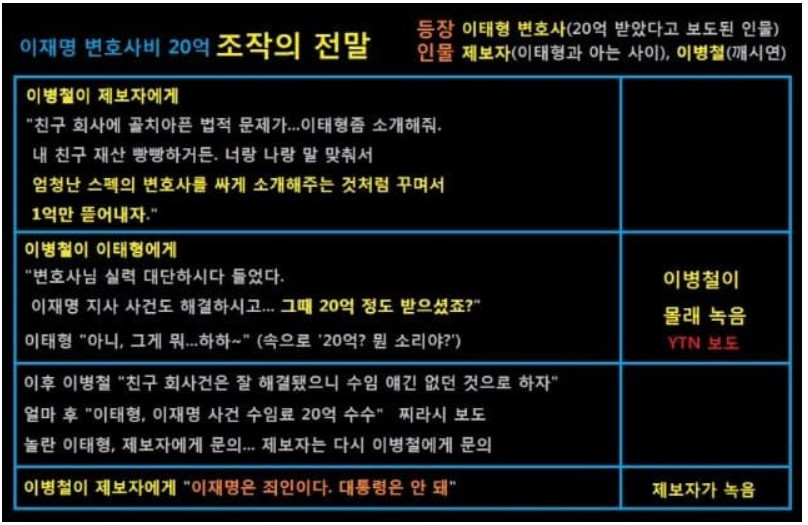 2.이병철씨는 이태형 변호사에게 도움을 받았던 "사업가 최씨"와 본인의 목소리를 녹취한 것이고 그것으로 "이재명 23억 변호사비 대납 정치공작"을 펼졌던 인물이다.