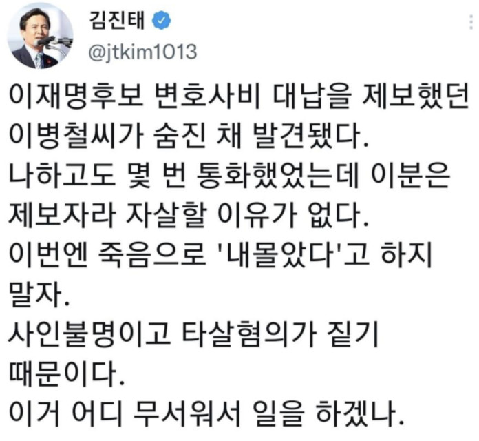 이재명 죽이자고 김진태와도 연락 했었구나.
