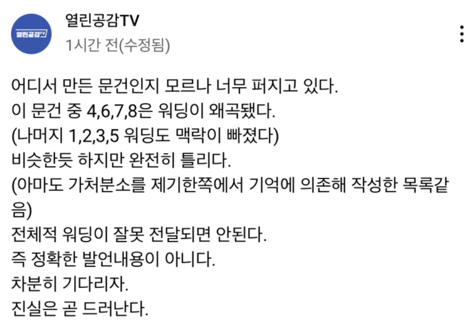 그런데 열린공감tv는 이렇게 말한다.