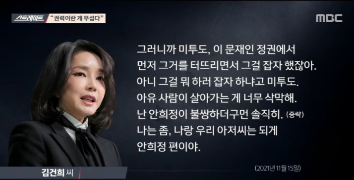 진보진영쪽에선 대부분 눈치채고 있는 '김건희'라는 여성의 캐릭터가 드러나는 정도로