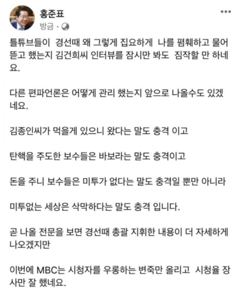 홍준표나 김종인이 듣기에는 열 받겠지만
