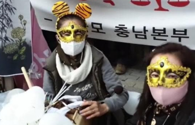 무속열 주변에는 이런 이상한 문양을 가진 마스크를 착용한 이들이 있다.