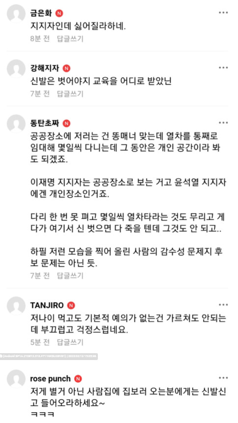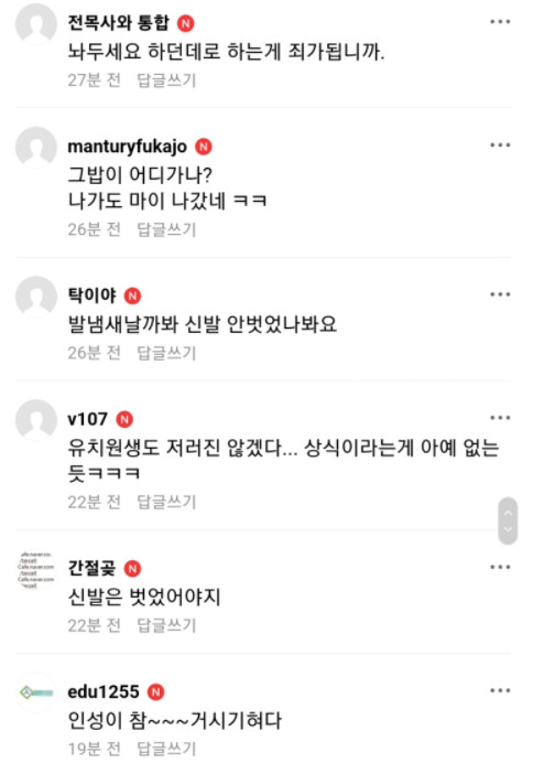 저런 기본적인 예의도 없는 아니 집안에서 받아본 적이 없는 이를 국민의 대표로 만들겠다는 지지자들...