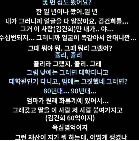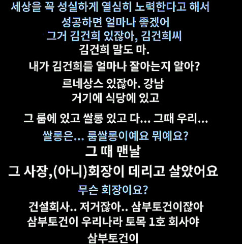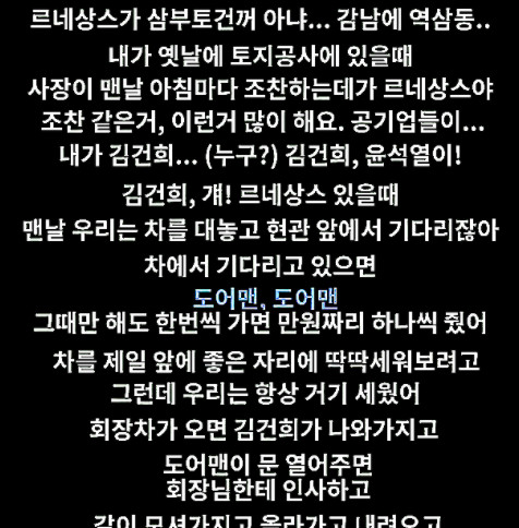 르네상스 도어맨들이 김건희를 조남호 갈치라고 불렀다고 하는것을 보면서 이재명이 대통령이 되면 사방팔방에서 증언이 쏟아 질 것 같습니다.