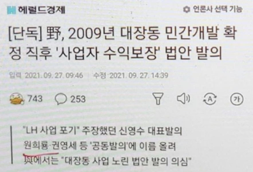 사업자 즉 대장동개발자들을 위해 사업자 수익보장 해 줘야 한다고 법안에 서명한 놈들 중에 한놈입니다.