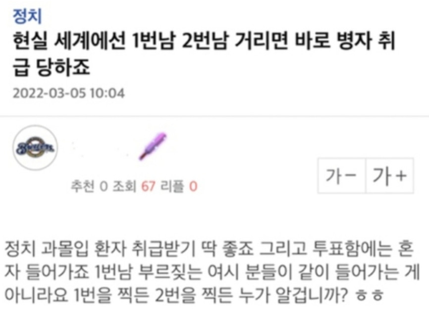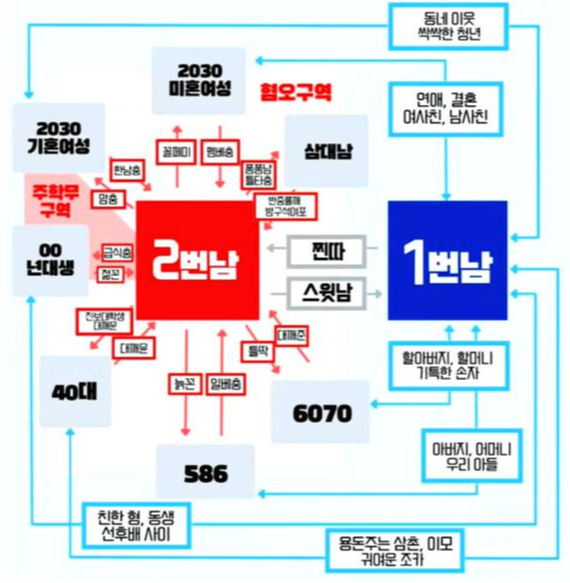 처음 시작은 그랬으나 1,2번 나누기가 정치색보다는 도태남 분류 의미가 크다
