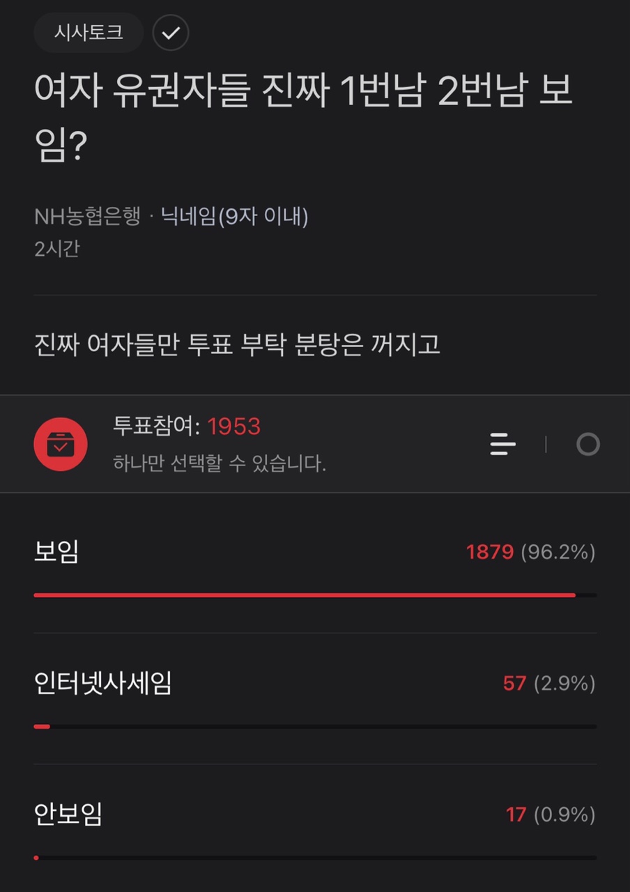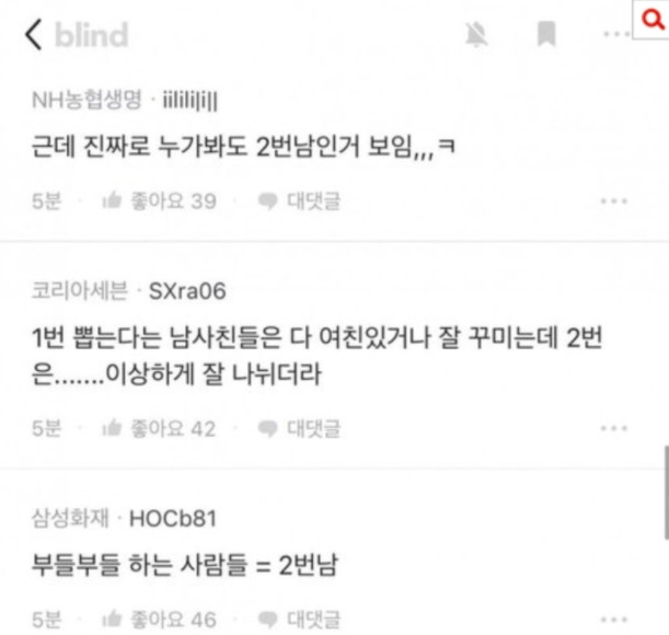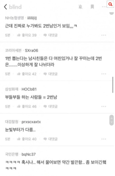 그런데 블라인드 사이트에서 2번남의 뼈를 때린 투표 결과가 나왔어..