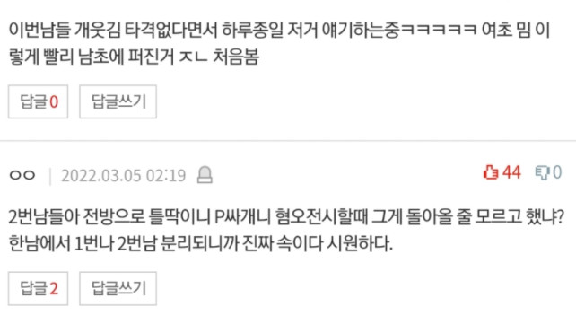 여기에 1번남의 반응과 2번남들의 반응이 불을 질렀다.
