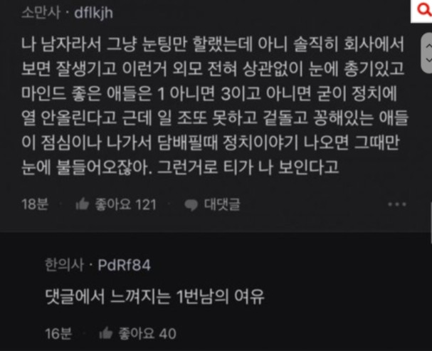 남친 이재명 지지자인데 이대남으로 한데 묶여서 성질 내던데 나누어서 부르니 개 편해 이러면서 놀기 시작했어.