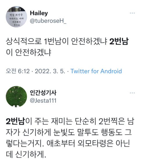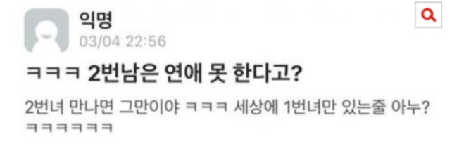 2번남은 연애 못한다고 ㅋㅋ 2번녀 만나면 돼...