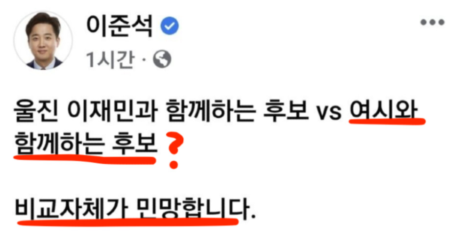이 와중에 이준석은 여성시대(여시)에 글 남긴 이재명을 조롱한다고 저런 글을 올렸어.