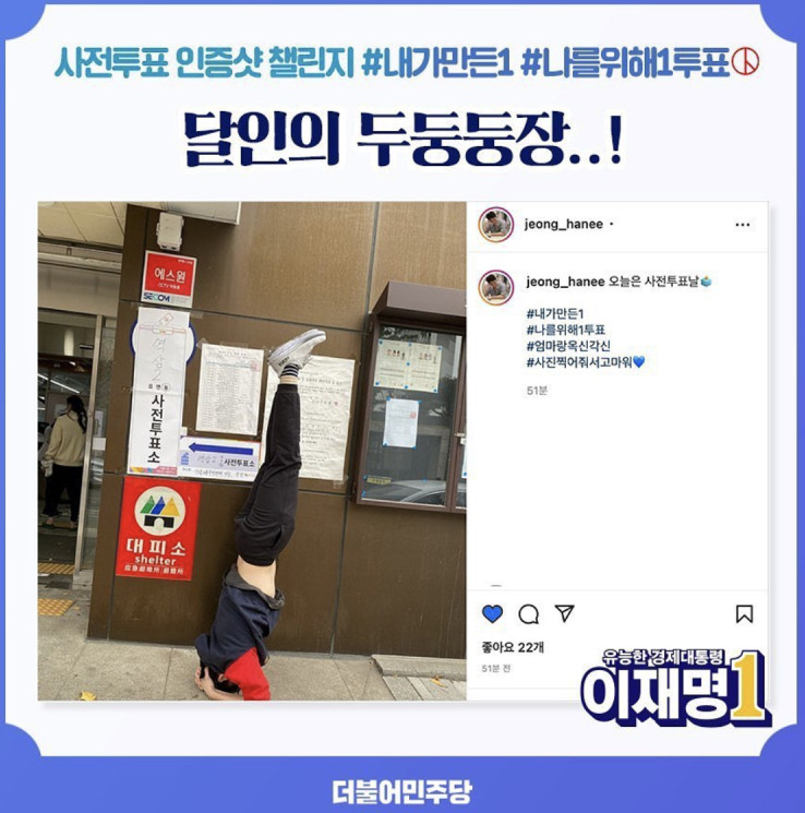 1번녀의 파란 한복을 시작으로 공중부양에 홍카단, 홍준표갤의 1번남 인증샷에 투표 할려고 외국에서 돌아오는 1번녀는 러시아의 전쟁 시작으로 비행기 티켓이 취소 당해도 끝까지 구해서 오는 정성을 보인다.
