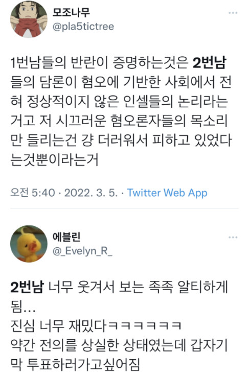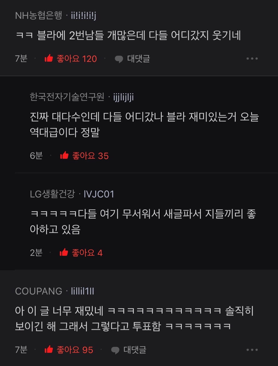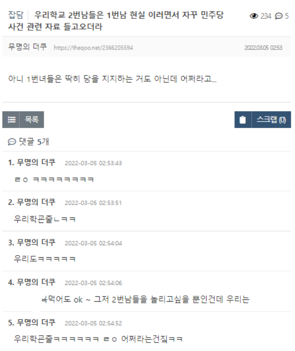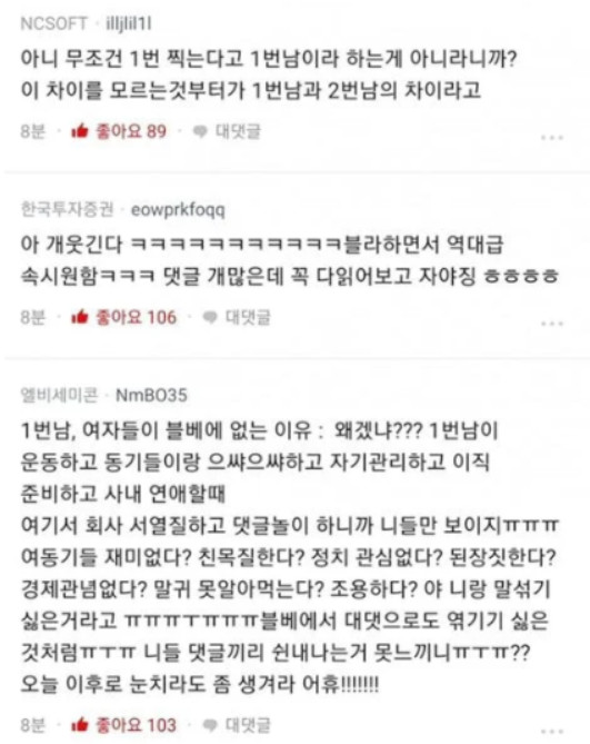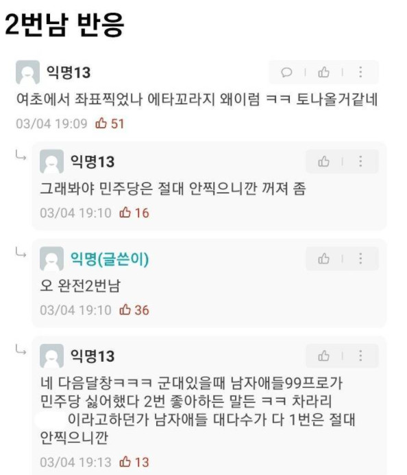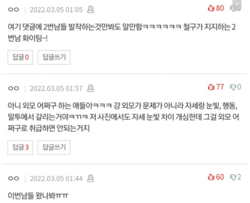 "자칭 2번남들"에게서 쏟아져 나옴.