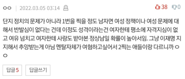 왜냐 부끄러운 후보에 펨코 하는 남자로 낙인 찍히기 때문인데