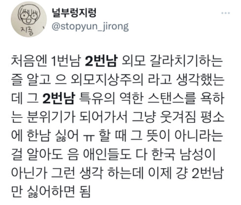 이게 말 줄임이 되면서 1번남 2번남이 되었고 이제는 1xy,2xy로 또 진화했다