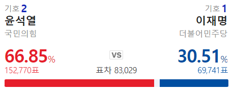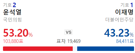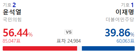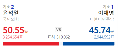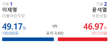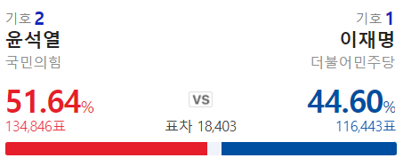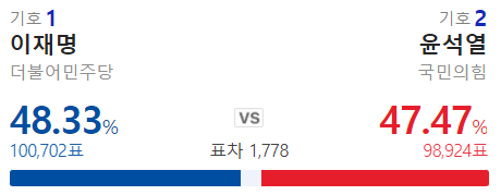 경기도 인천이 그나마 이재명 지지를 강력하게 해 준 덕분에 26만표 차이 밖에 나지 않은것은 다행입니다.