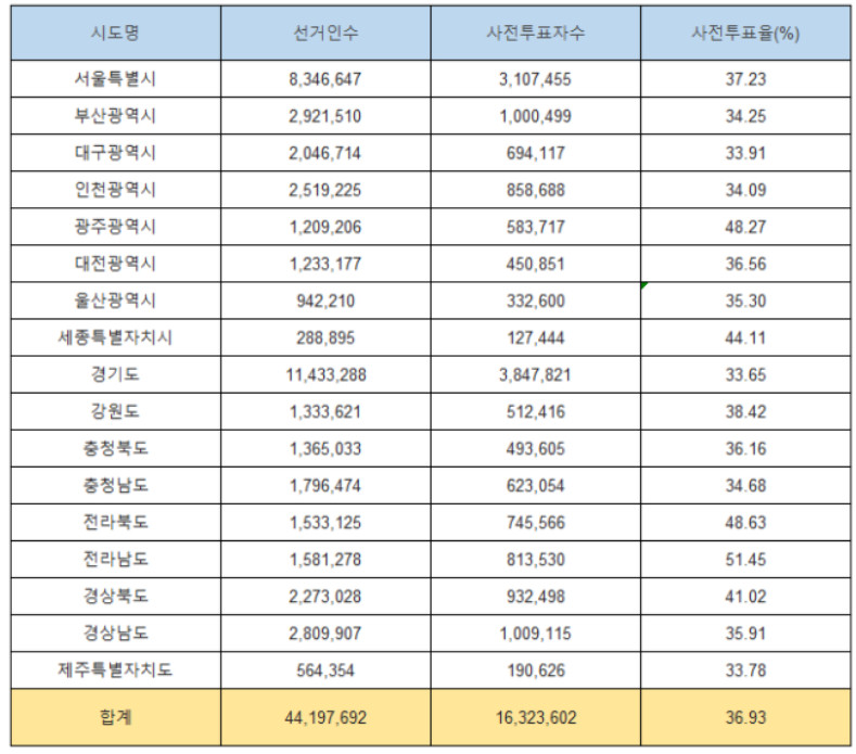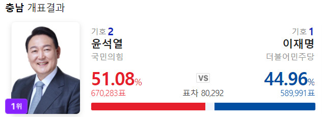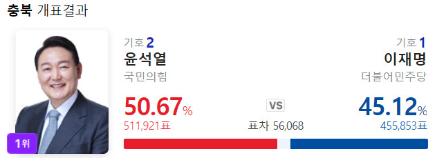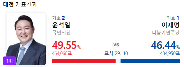 서울 보다 더 큰 표 차이로 윤석열을 지지 해 버렸으니까요.