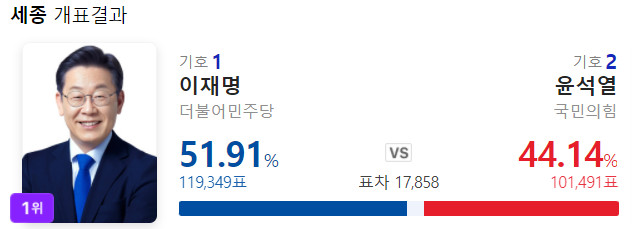 결국 정권은 국힘당이 가져가는 결과물이 나왔습니다.