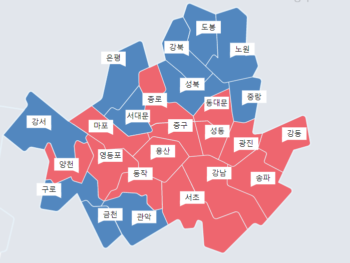 20대 대선 서울 지역구별 득표/민주당 오랜 텃밭도 무너졌다.