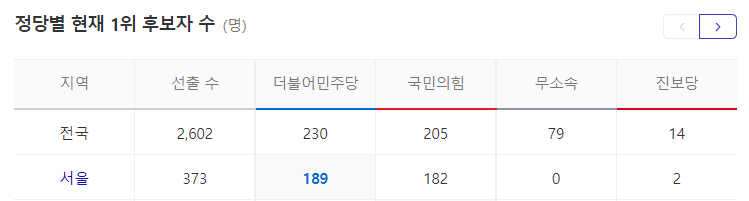 광역비례를 구별로 보면 거의 국힘당이 이겼어.