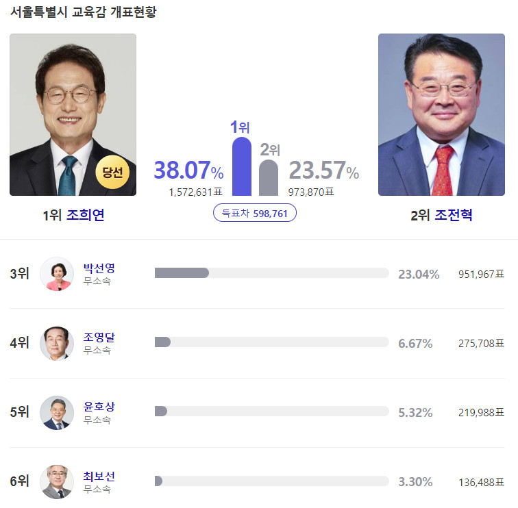 서울에서 조희연 교육감이 3선 연임을 하게 되었네