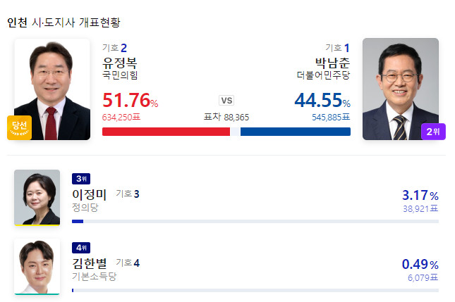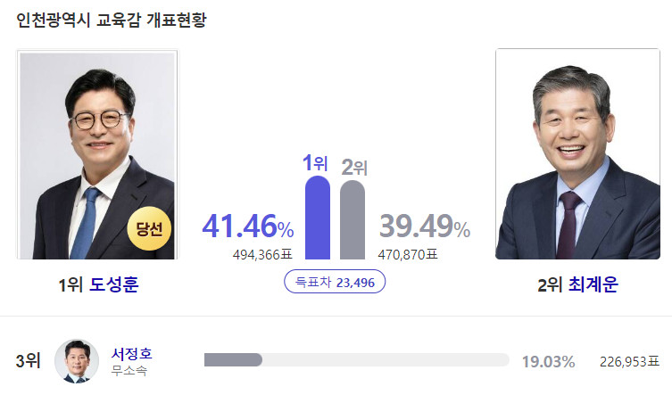 인천은 시장은 국힘당, 교육감은 진보 교육감을 선택했다.