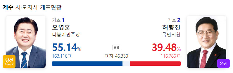 제주도지사도 더불어민주당이 먹었다.