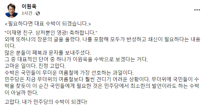 그런데 이재명이 당선이 되자 수박들이 이러고 있다