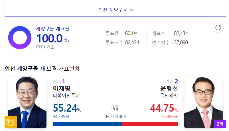 경기도지사 선거의 이변에 여기서도 나올까 조마조마 한 이들이 많았을 것 같네.