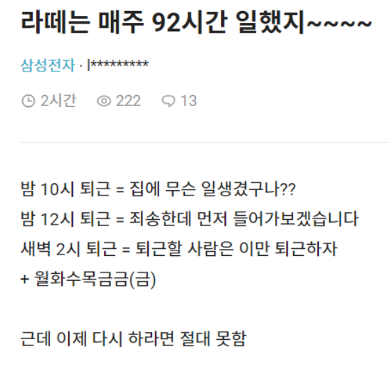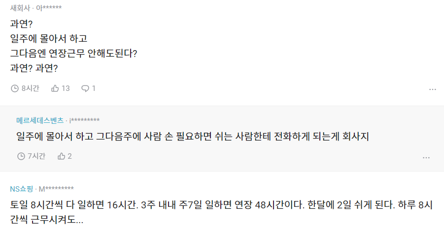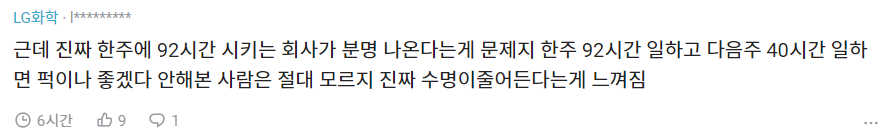 52시간도 안지키고 있는 마당에 92시간 일했으니 그래 담주는 12시간 일하고 나머지는 쉬어! 가 된다고???