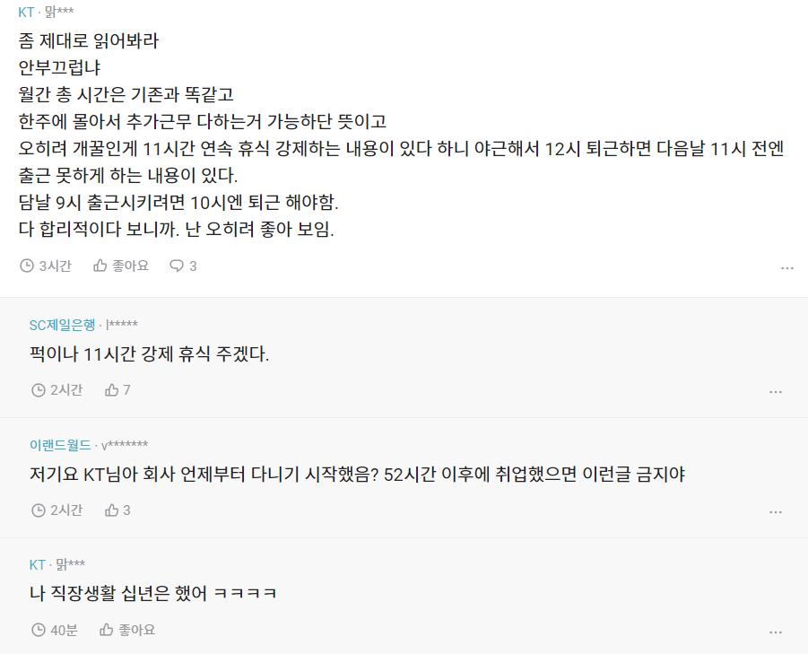 그런데 진짜 아무리 좋게 생각해서 야근이 잦은 회사에서 근무시간 늘리게 해줘서 야근 수당을 합법적으로 더 줄 수 있게 되었다고 치자.